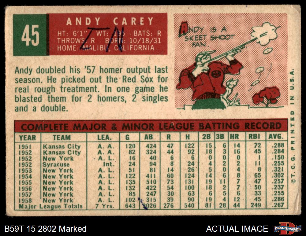 1959 Topps #45 Andy Carey 1.5 - FAIR