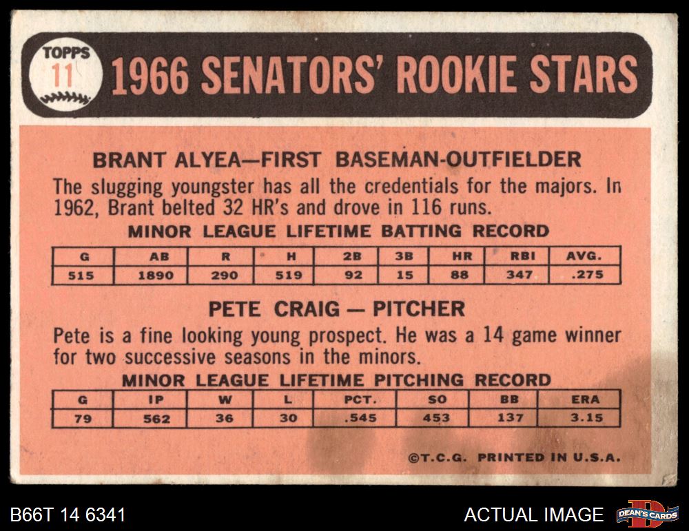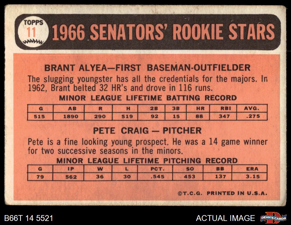 1966 Topps #11 - Brant Alyea / Pete Craig Senators Rookies 1.5 - FAIR