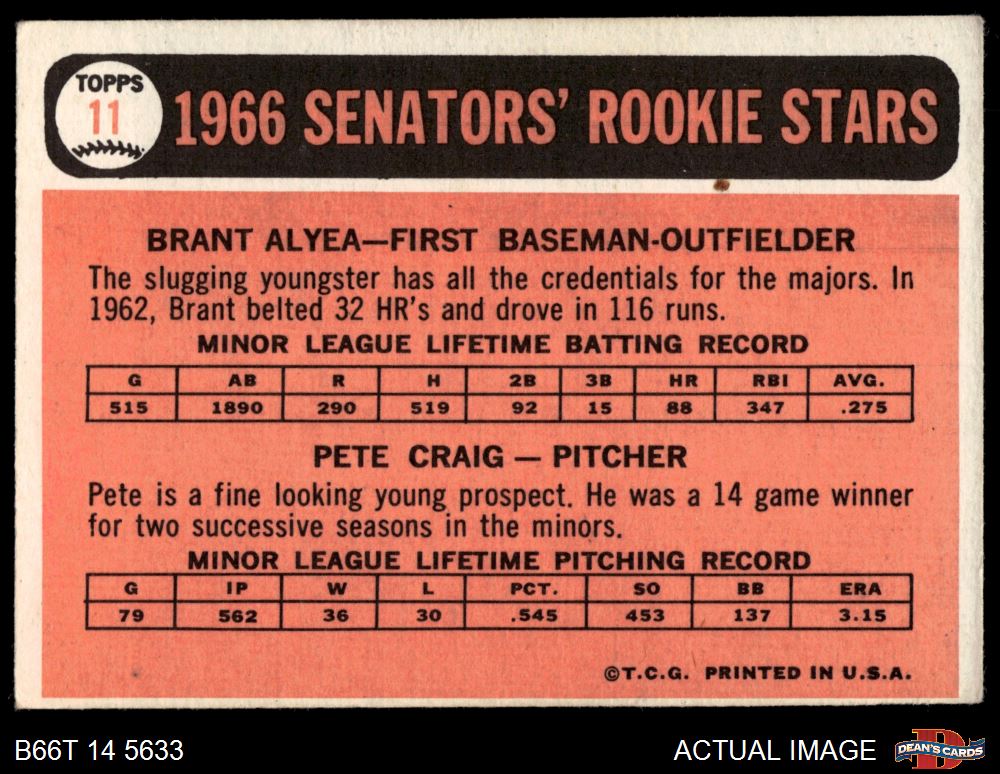 1966 Topps #11 - Brant Alyea / Pete Craig Senators Rookies 3 - VG