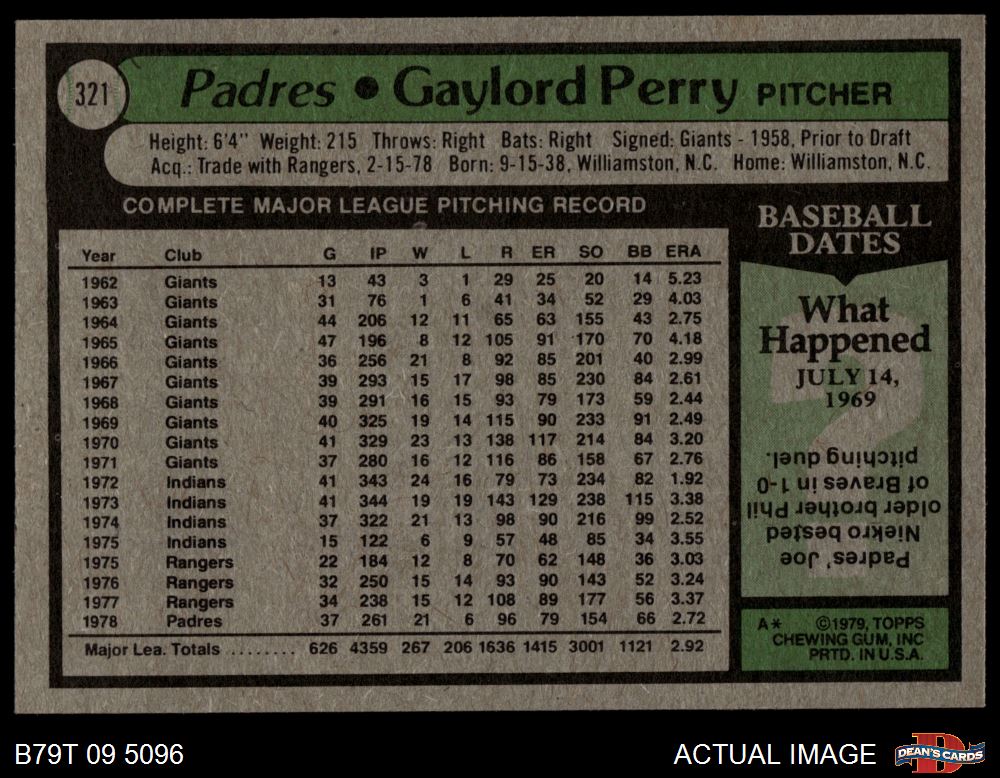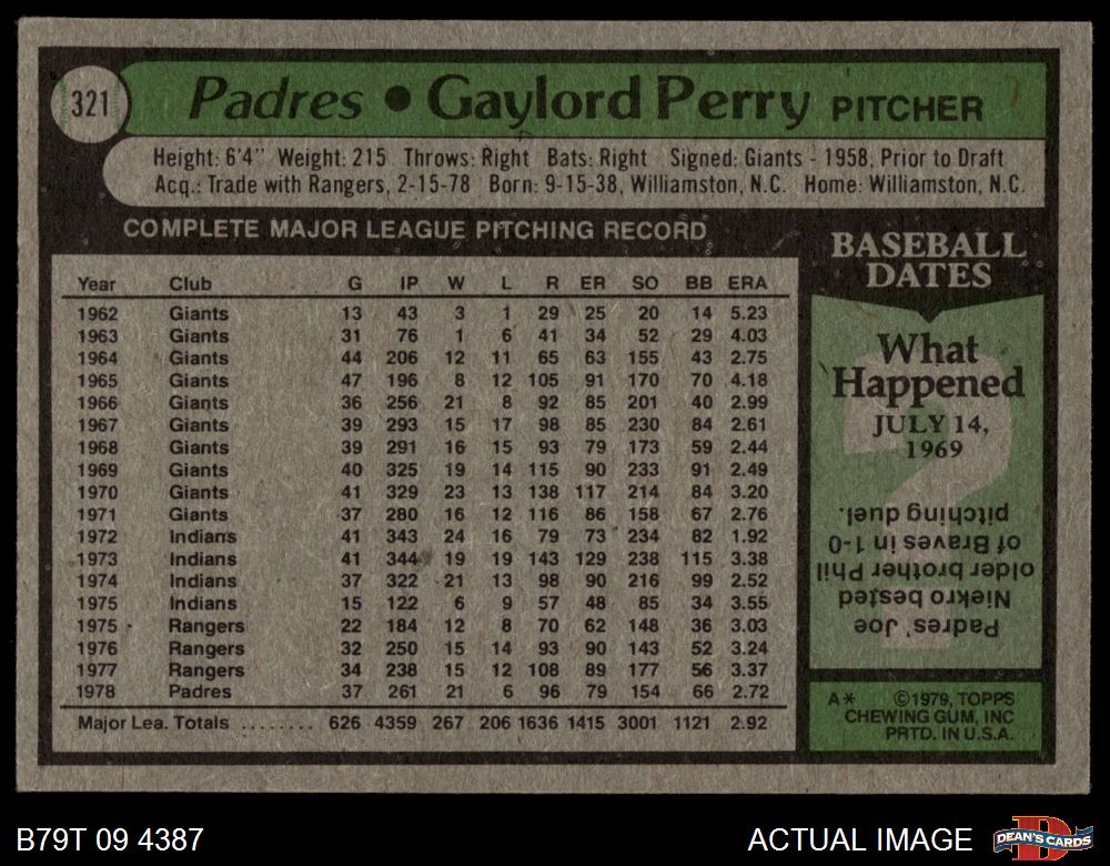 1979 Topps #321 Gaylord Perry 4 - VG/EX