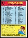 1974 Topps Checklist  Green Bay Packers Team Front Thumbnail