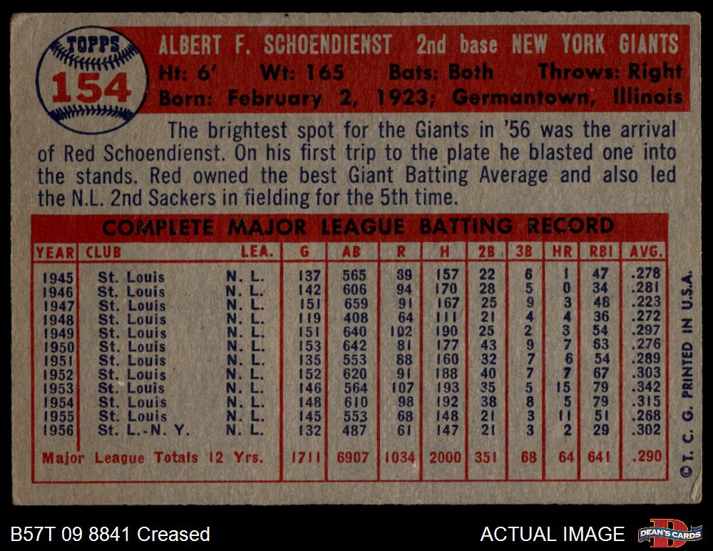 1957 Topps #154 Red Schoendienst 2 - GOOD
