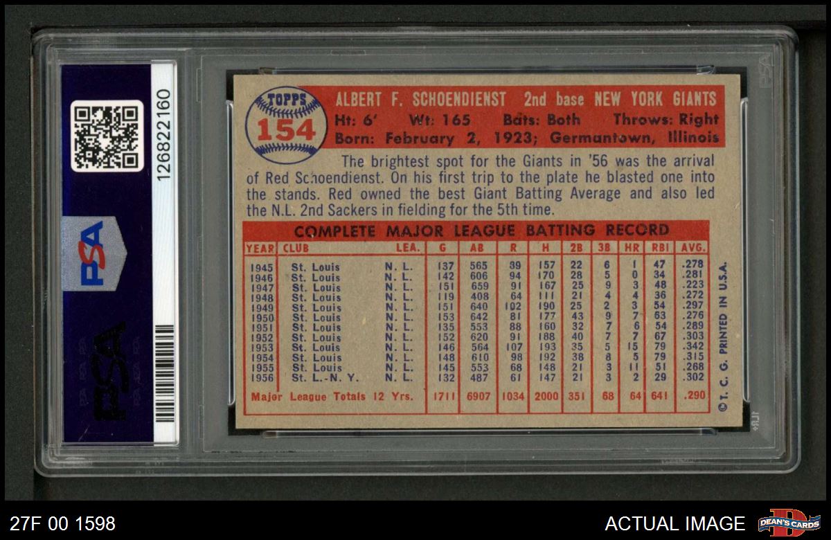 1957 Topps #154 Red Schoendienst PSA 6 - EX/MT