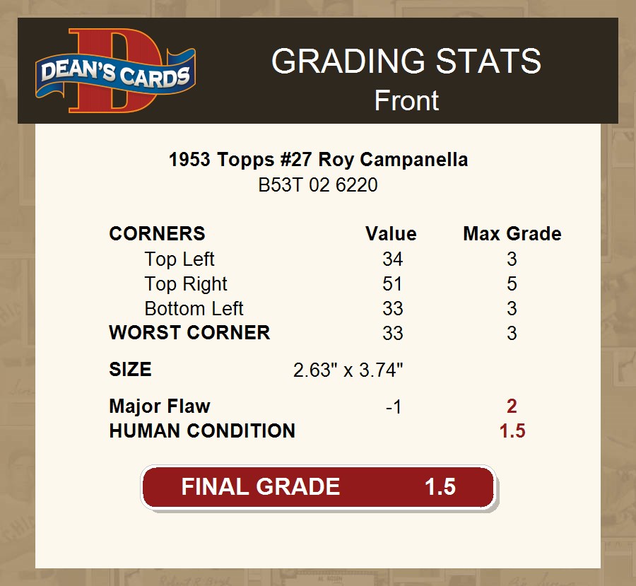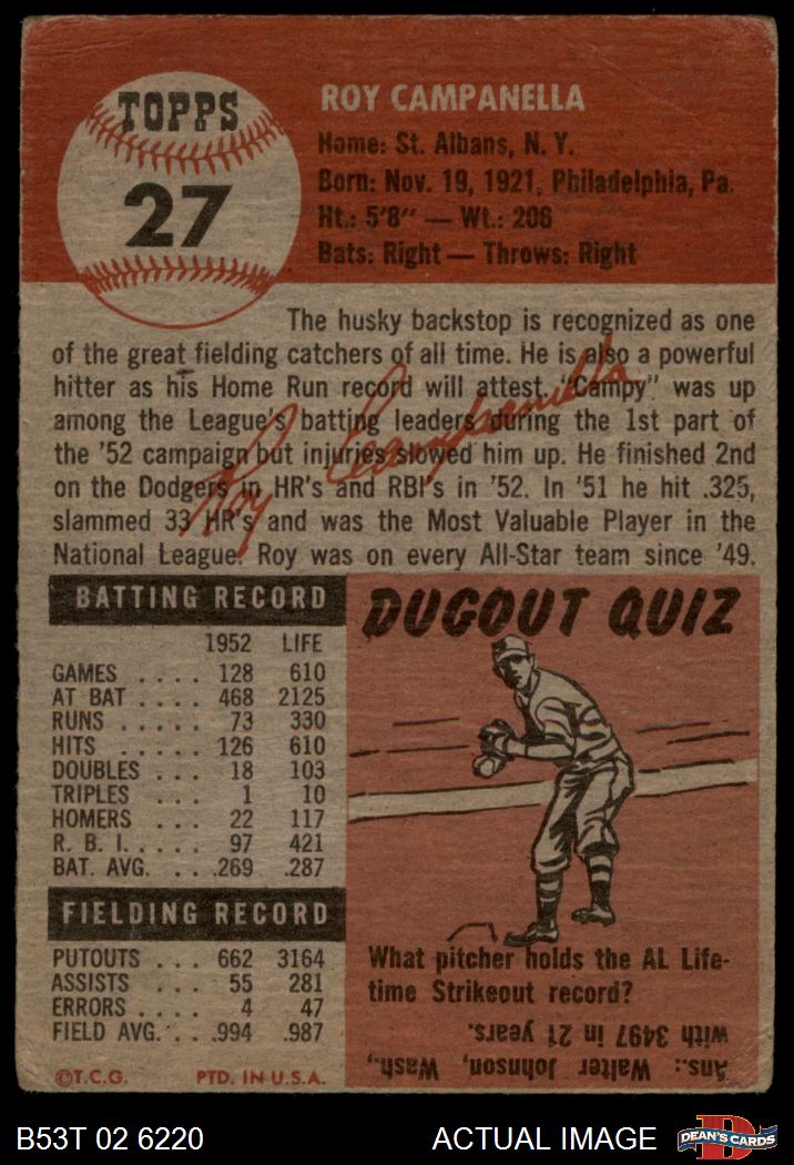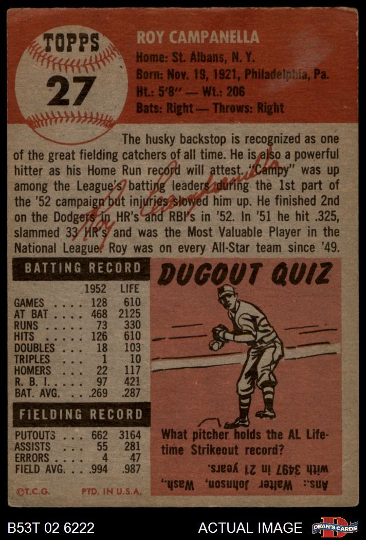 1953 Topps #27 Roy Campanella 1.5 - FAIR