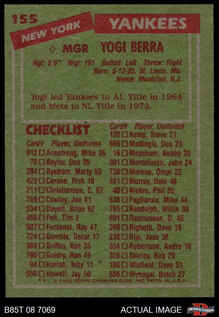 1985 Topps Baseball Cards (11,246 available)1985 Topps Yankees (360 available)