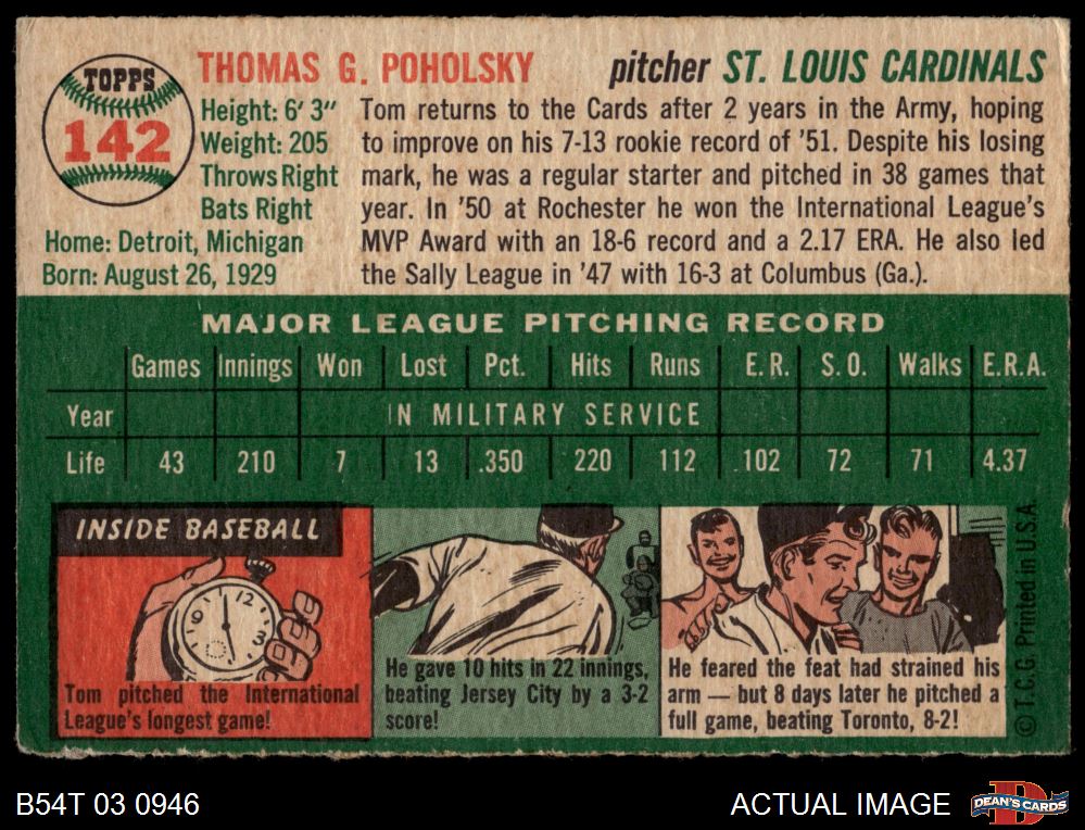 1954 Topps #142 Tom Poholsky