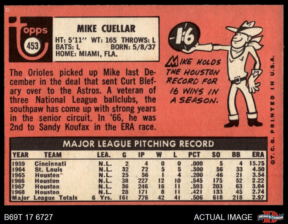 1969 Topps #453 Mike Cuellar