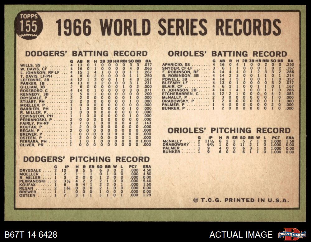1967 Topps #155 Hank Bauer / Dave McNally 1966 World Series Summary - The Winners Celebrate 6 - EX/MT
