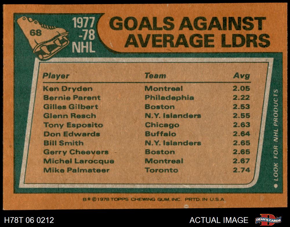 1978 Topps #68 - Ken Dryden / Bernie Parent / Gilles Gilbert League Leaders 7.5 - NM+