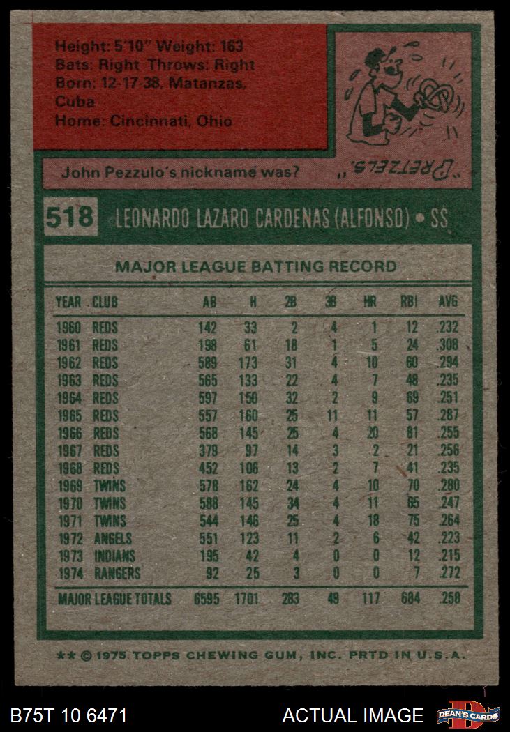 1975 Topps #518 Leo Cardenas 4 - VG/EX