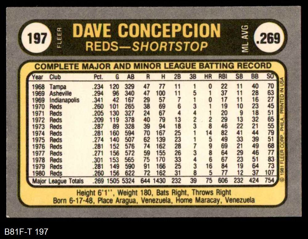1981 Fleer #197 Dave Concepcion 8 - NM/MT