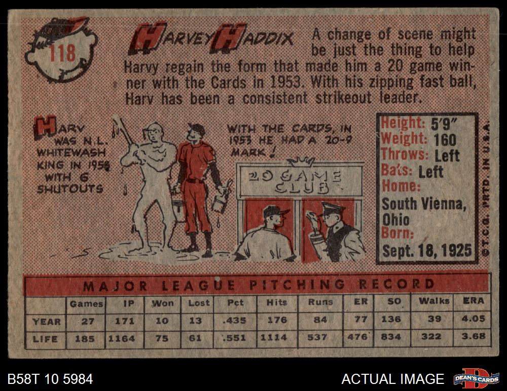 1958 Topps #118 Harvey Haddix 3 - VG