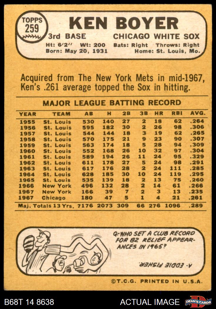 1968 Topps #259 Ken Boyer 4.5 - VG/EX+