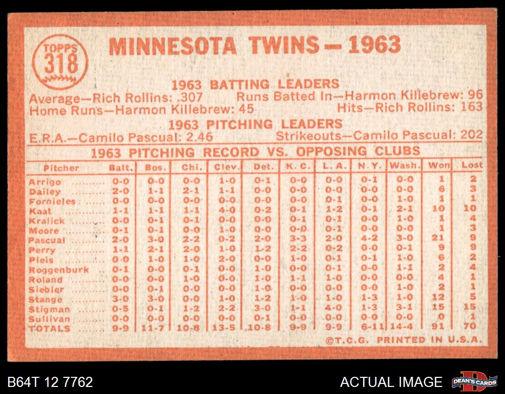 1964 Topps #318 Twins Team 4.5 - VG/EX+