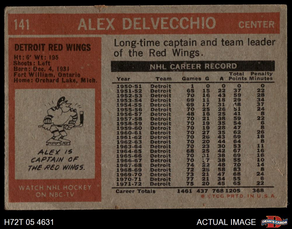 1972 Topps #141 Alex Delvecchio 4.5 - VG/EX+