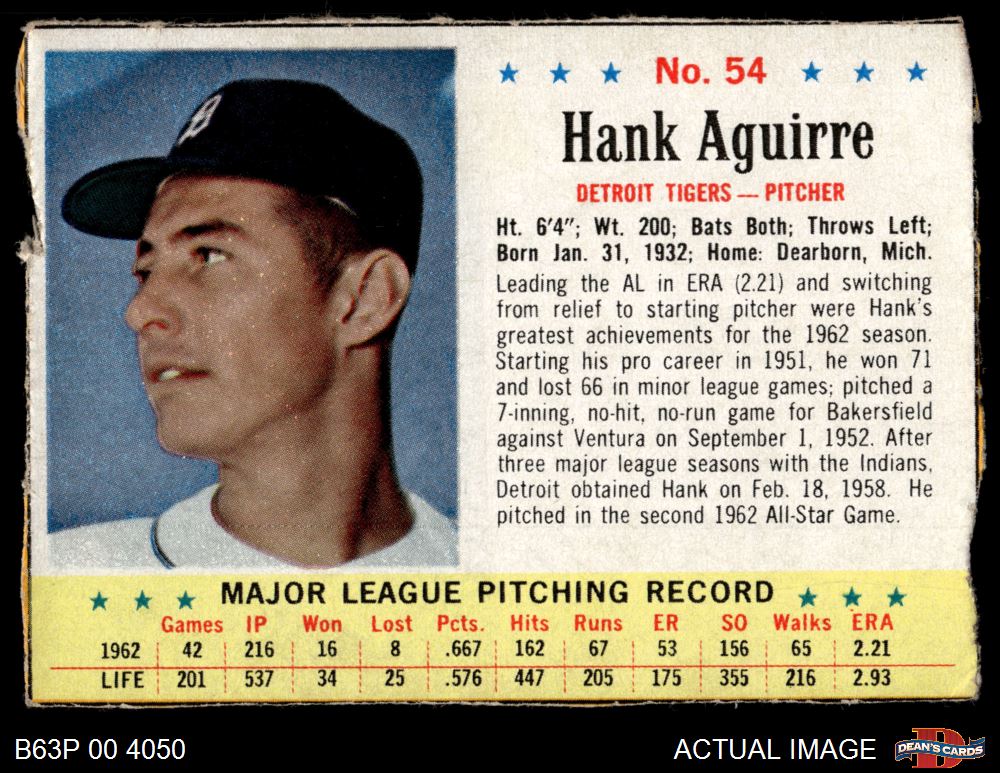 1963 Post Cereal #54 Hank Aguirre 1.5 - FAIR