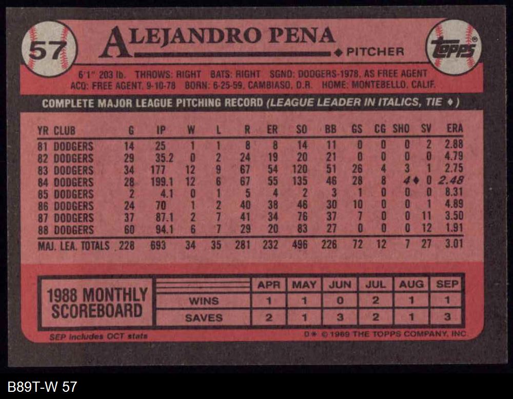 1989 Topps #57 Alejandro Pena 8 - NM/MT