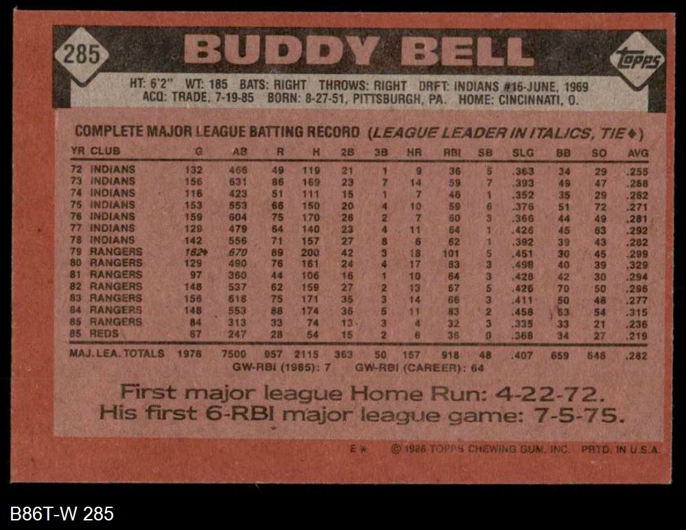 1986 Topps #285 Buddy Bell