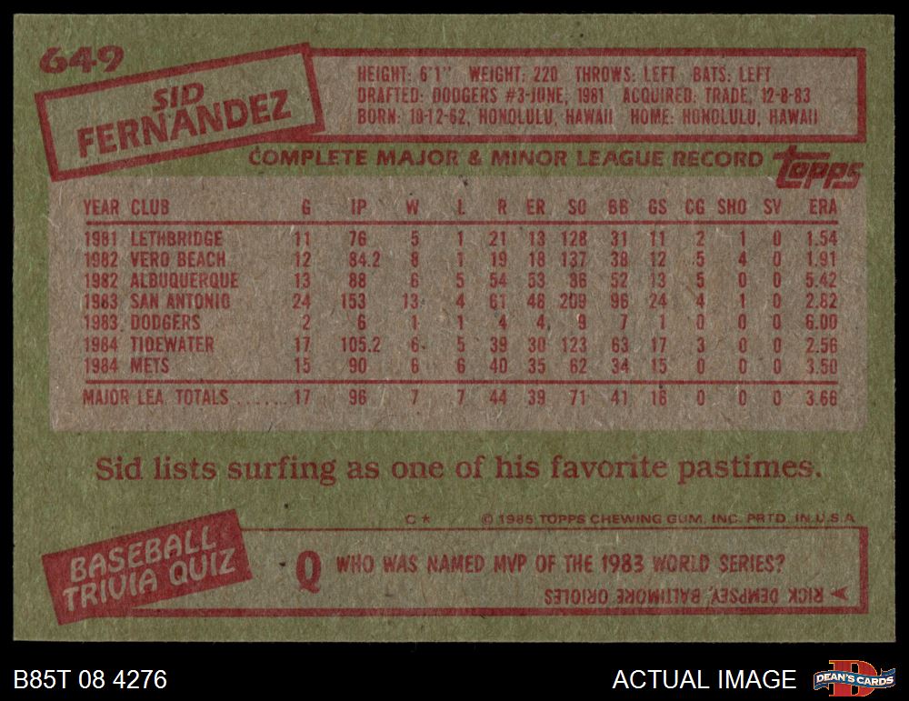 1985 Topps Baseball Cards (11,243 available)1985 Topps Mets (364 available)