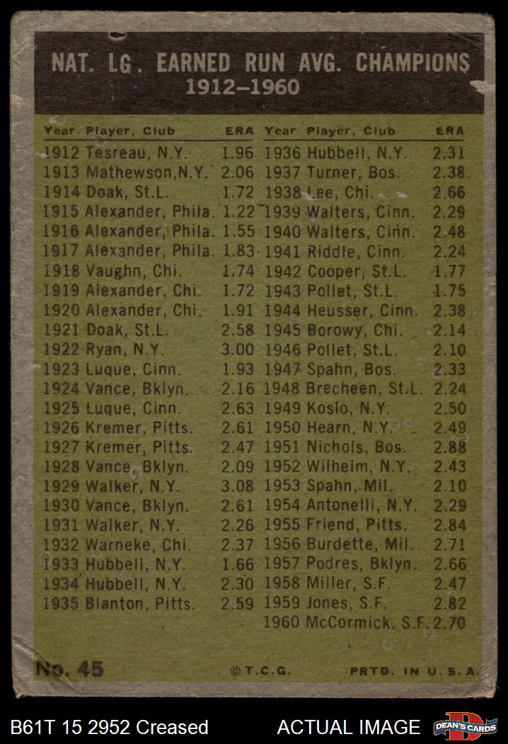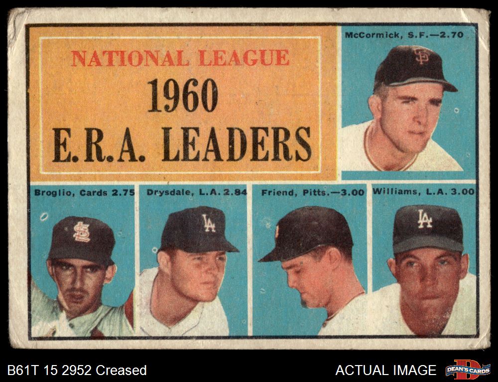 1961 Topps #45 - Don Drysdale / Bob Friend / Mike McCormick / Stan Williams / Ernie Broglio NL ERA Leaders 1.5 - FAIR