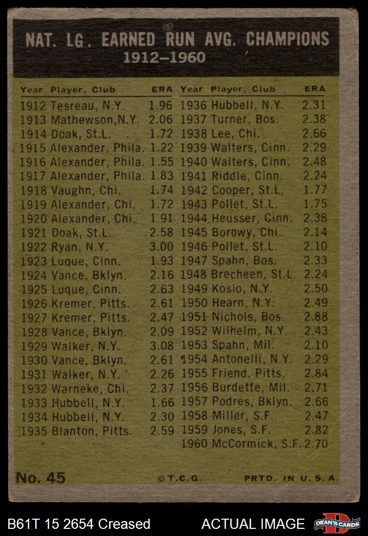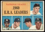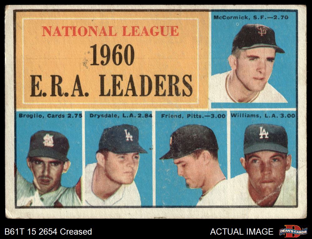 1961 Topps #45 - Don Drysdale / Bob Friend / Mike McCormick / Stan Williams / Ernie Broglio NL ERA Leaders 2 - GOOD