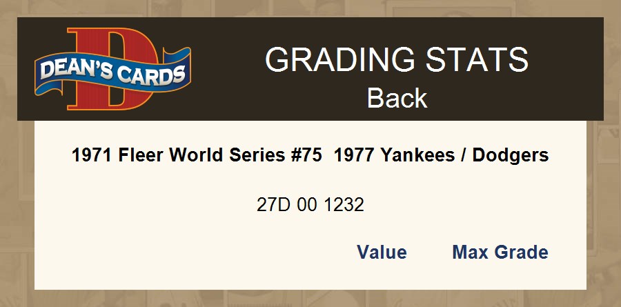 1971 Fleer World Series #75 1977 Yankees / Dodgers PSA 4 - VG/EX