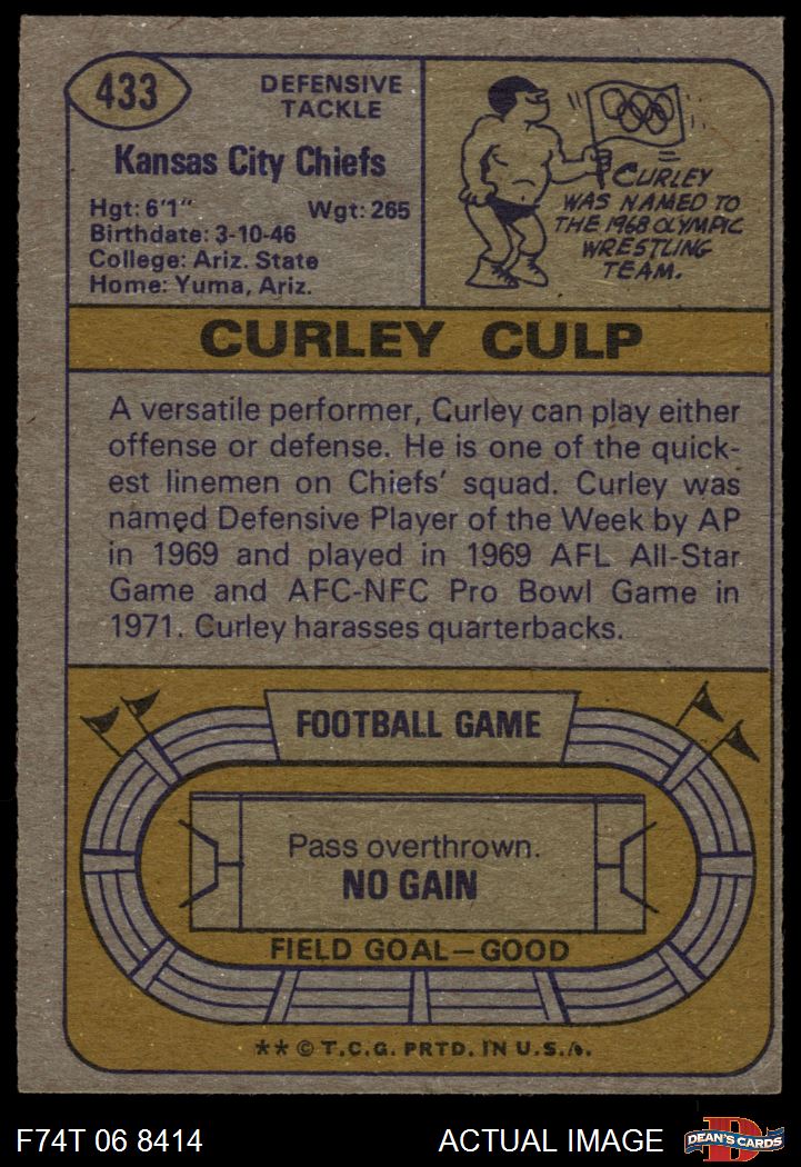1974 Topps #433 Curley Culp