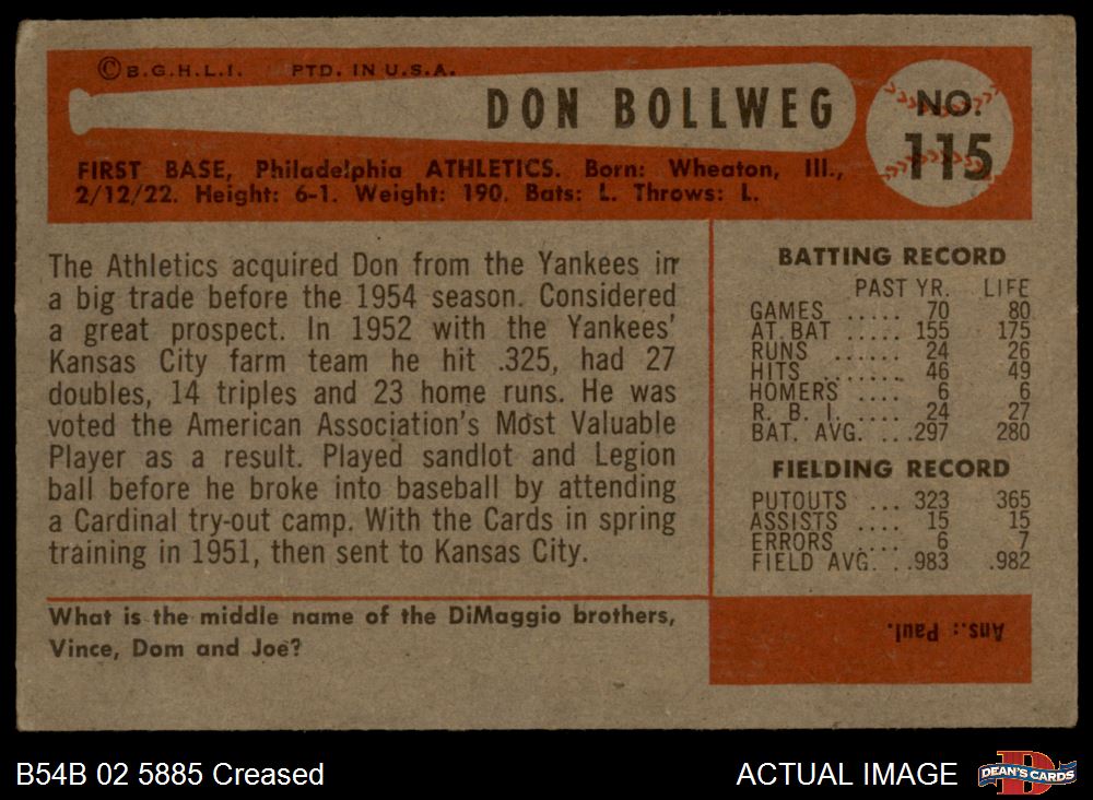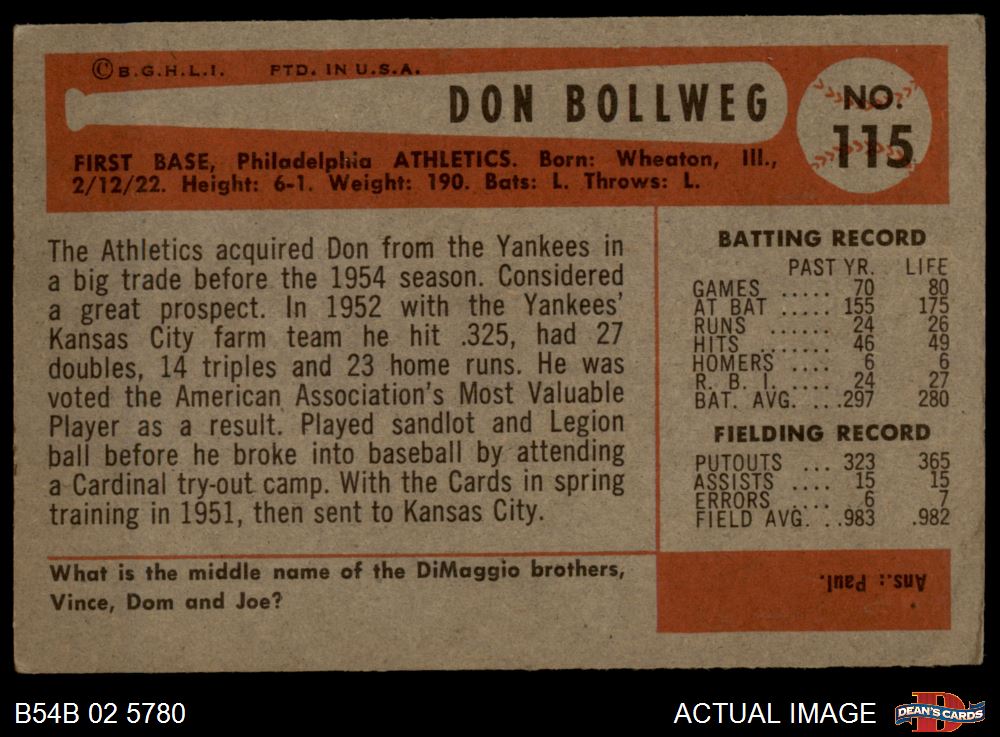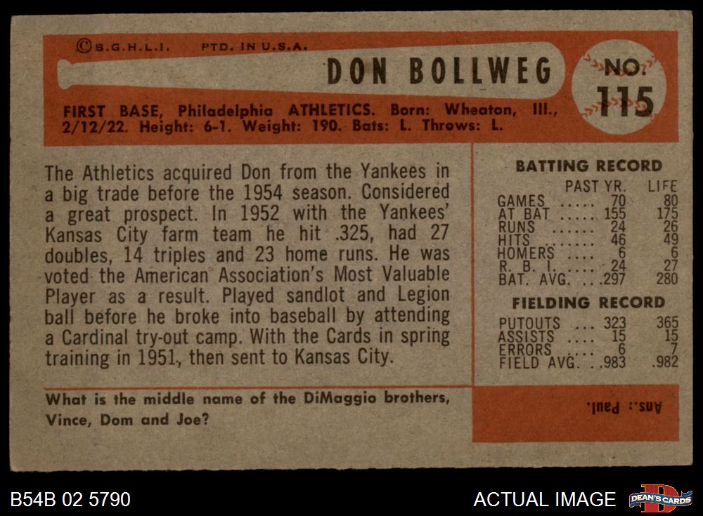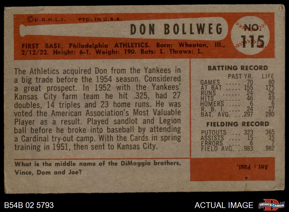 1954 Bowman Baseball Cards (2,220 available)1954 Bowman Athletics (254 available)