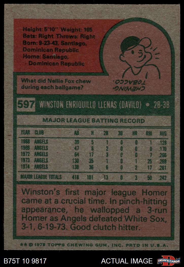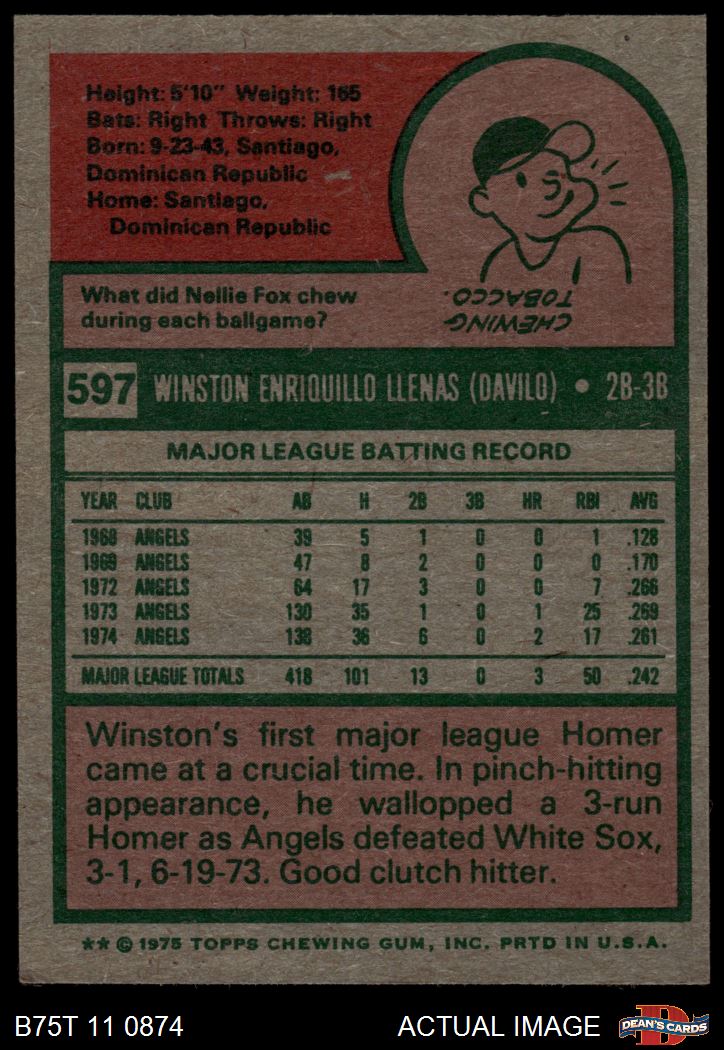 1975 Topps #597 Winston Llenas