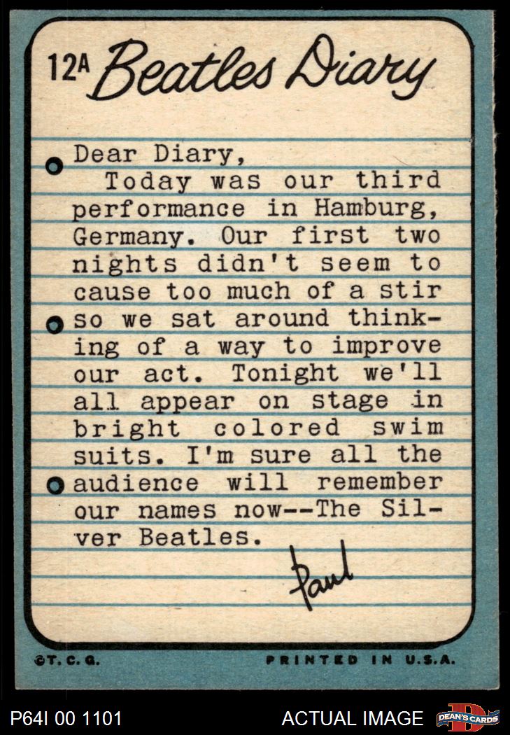 1964 Topps Beatles Diary #12 A Paul McCartney
