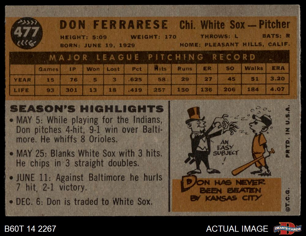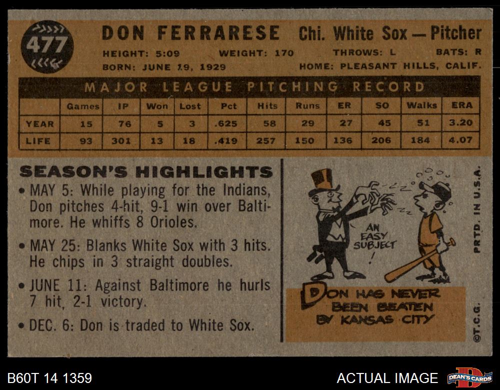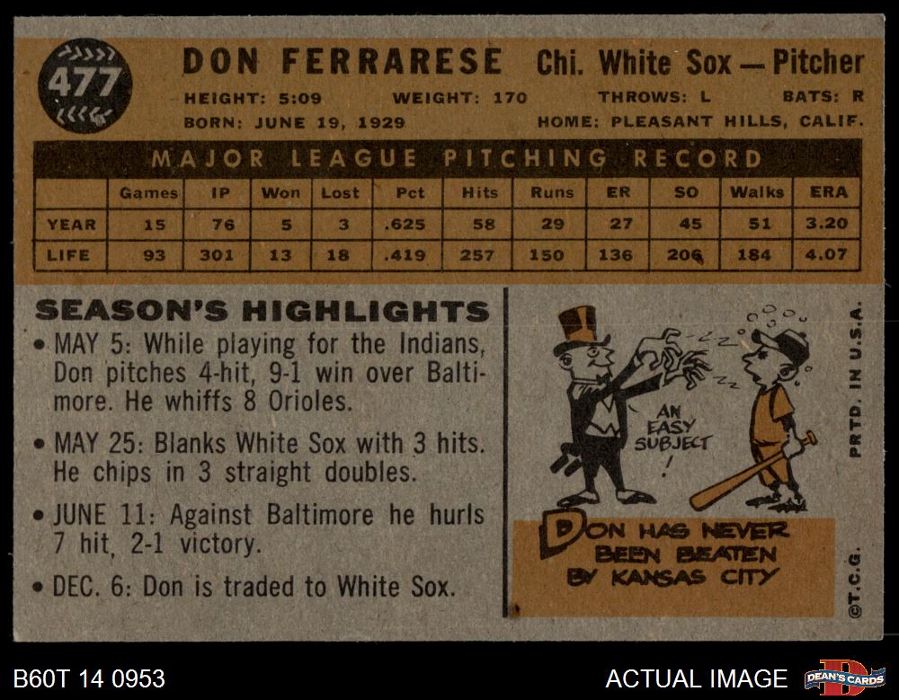 1960 Topps Baseball Cards (11,541 available)1960 Topps White Sox (1,045 available)