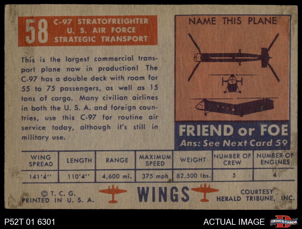 1952 Topps Wings #58 C-97 Stratofreighter 4 - VG/EX