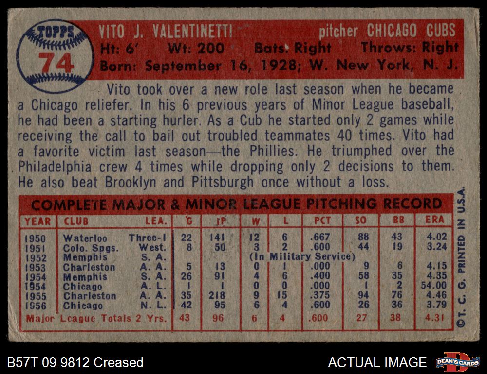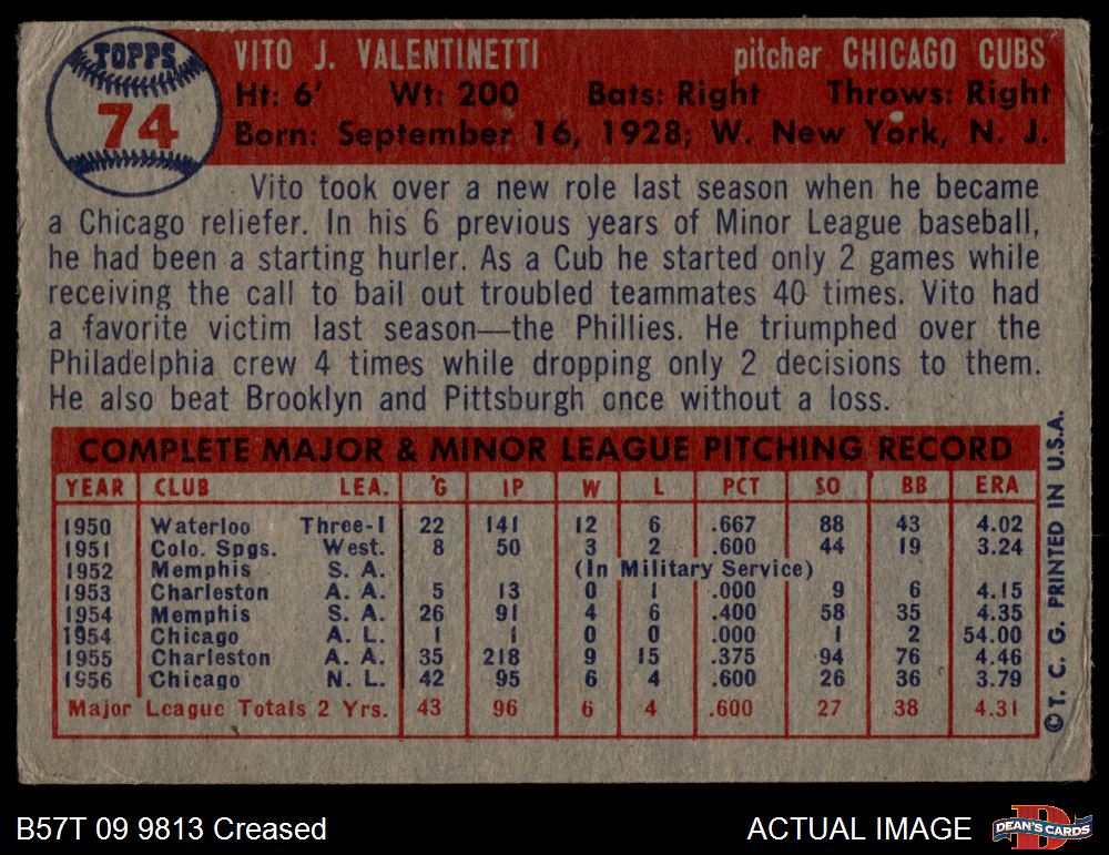 1957 Topps #74 Vito Valentinetti 2 - GOOD
