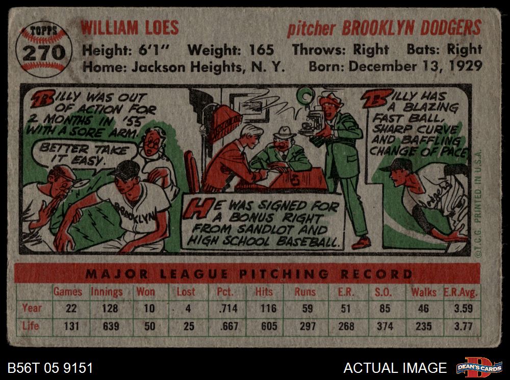 1956 Topps #270 Billy Loes 1.5 - FAIR