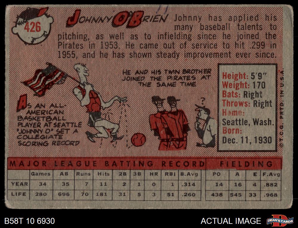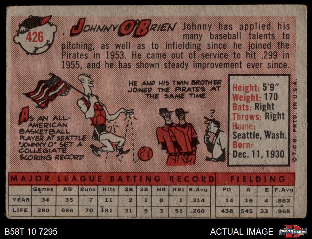 1958 Topps #426 Johnny O'Brien 1.5 - FAIR