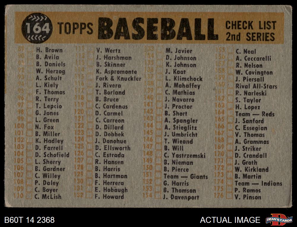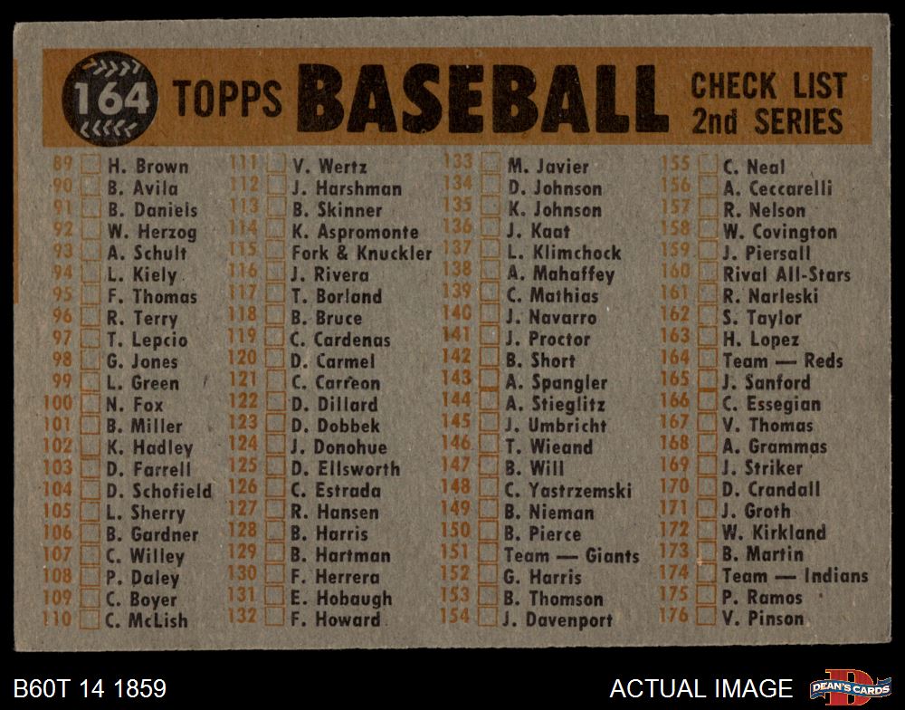1960 Topps #164 Reds Team Checklist 2 - GOOD