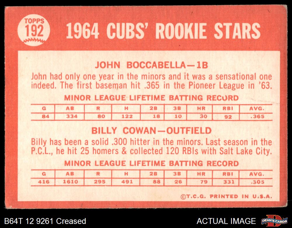 1964 Topps #192 - Billy Cowan / John Boccabella Cubs Rookies 2.5 - GD+