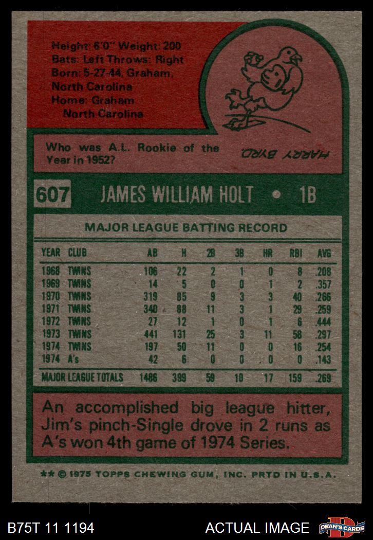 1975 Topps #607 Jim Holt