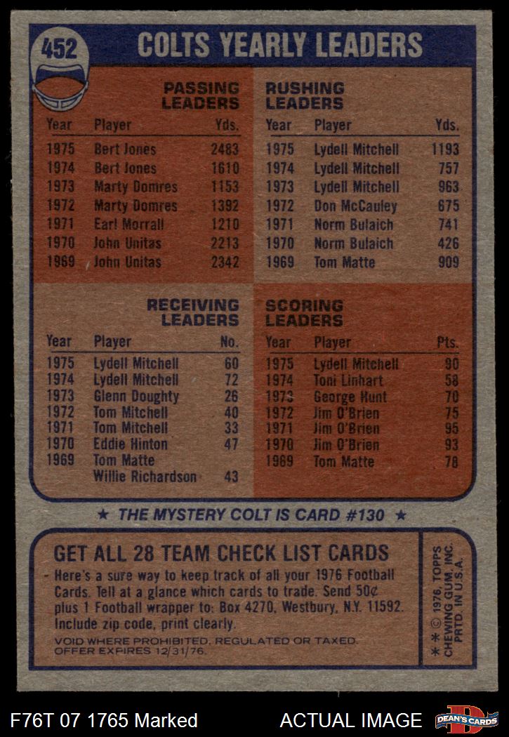 1976 Topps #452  Colts Team Checklist Front Thumbnail