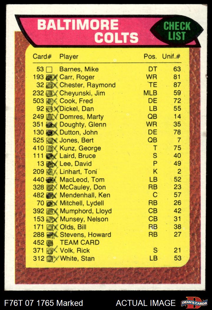 1976 Topps #452 Colts Team Checklist 1.5 - FAIR