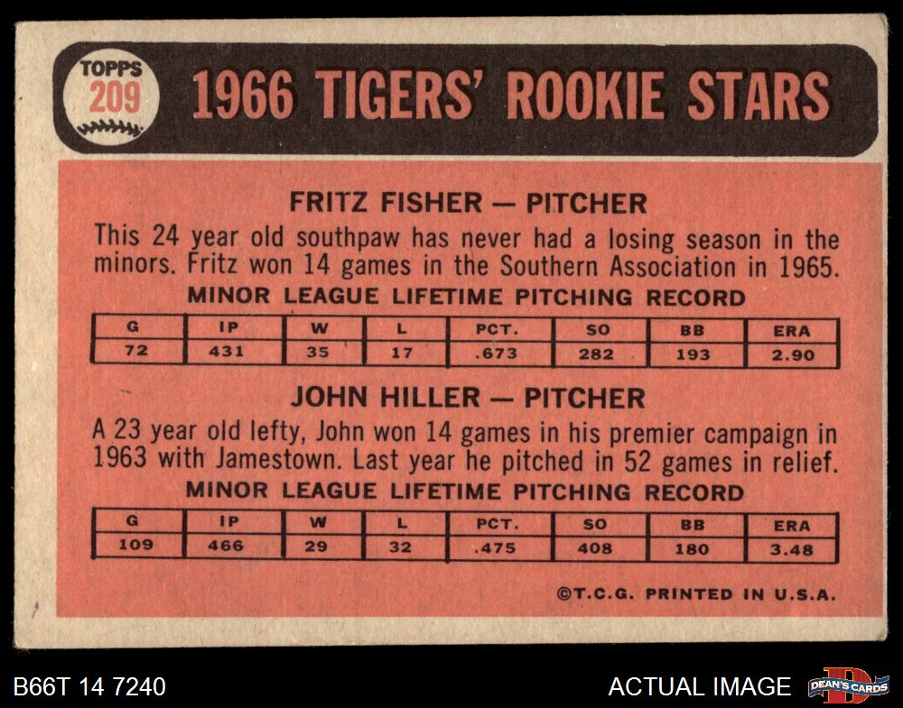 1966 Topps #209 - Fritz Fisher / John Hiller Tigers Rookies 2 - GOOD
