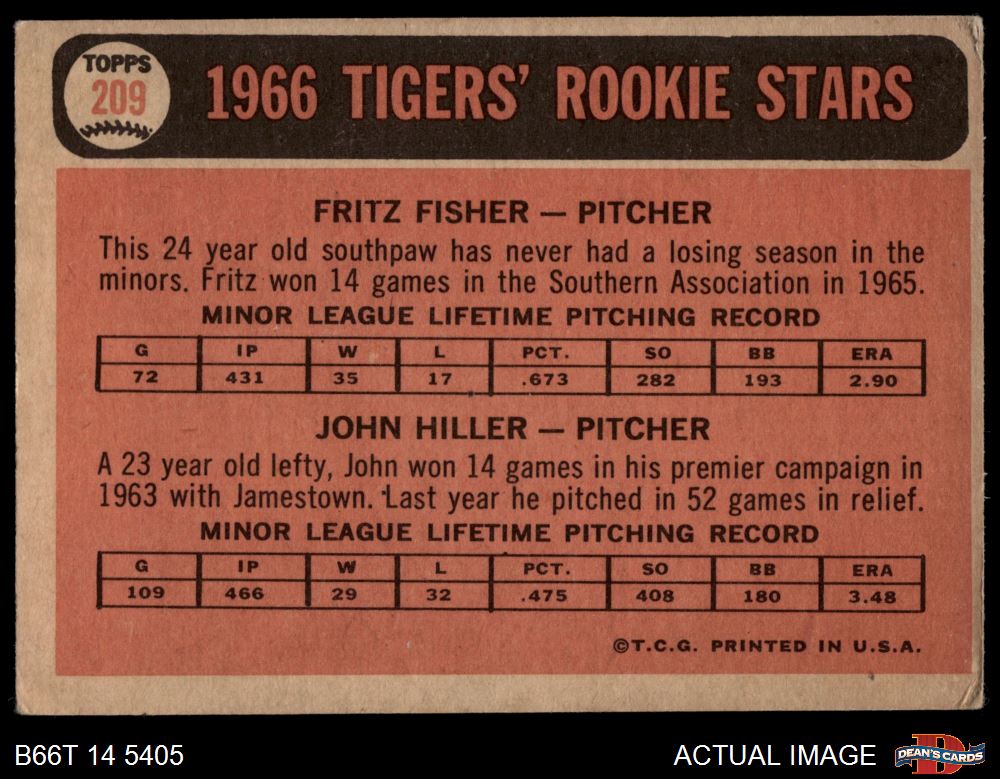 1966 Topps #209 - Fritz Fisher / John Hiller Tigers Rookies 3 - VG