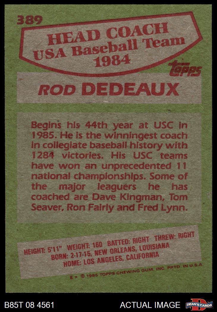 1985 Topps #389 - Rod Dedeaux Team USA 6 - EX/MT