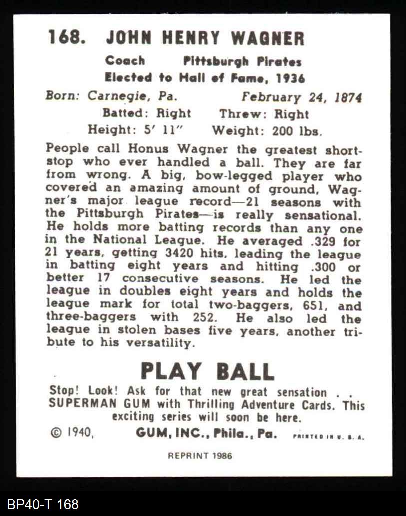 1940 Play Ball Reprint #168 Honus Wagner