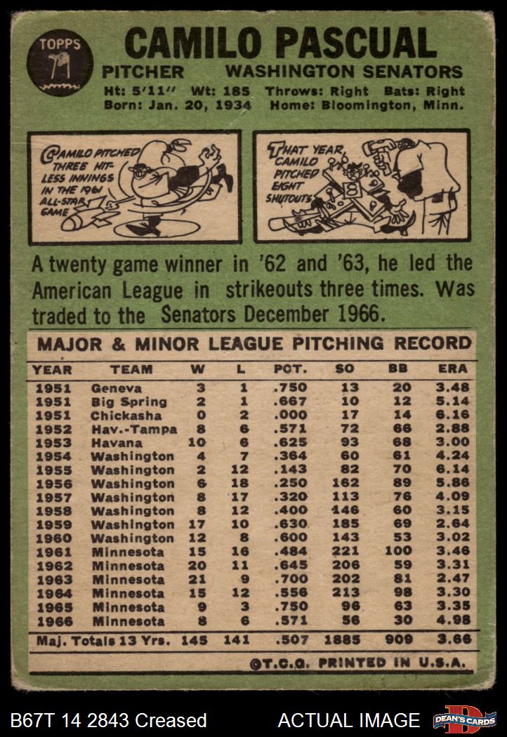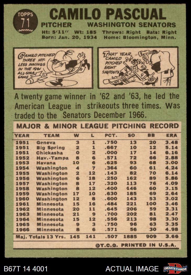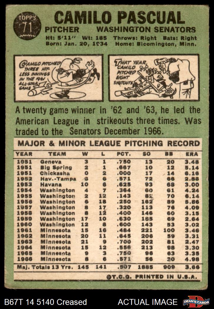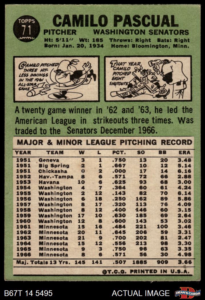 1967 Topps #71 Camilo Pascual
