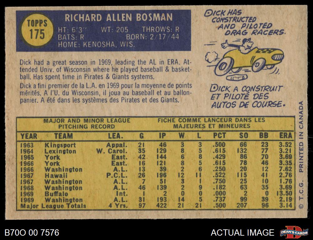 1970 O-Pee-Chee #175 Dick Bosman 5 - EX