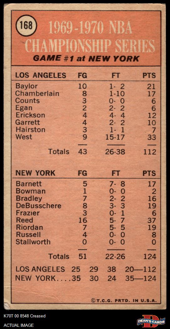 1970 Topps #168 - Willis Reed 1969-70 NBA Championship - Game 1 1.5 - FAIR