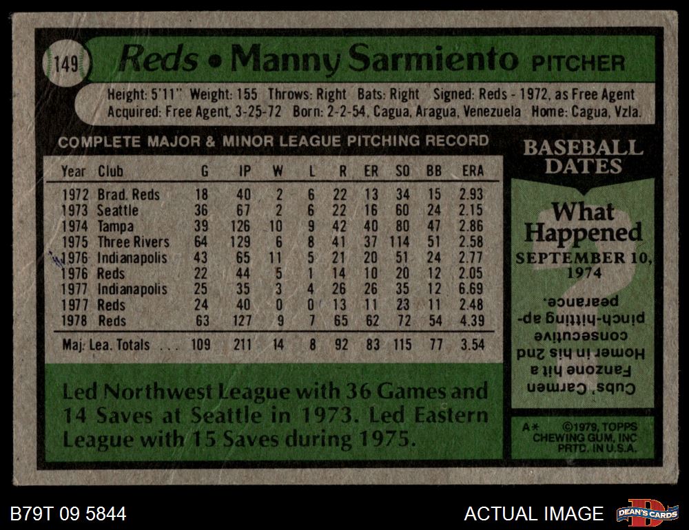 1979 Topps #149 Manny Sarmiento 1.5 - FAIR