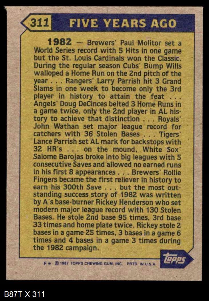 1987 Topps #311 Turn Back The Clock
