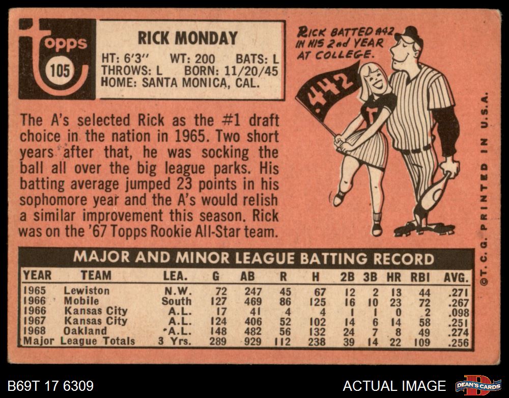1969 Topps #105 Rick Monday 2 - GOOD
